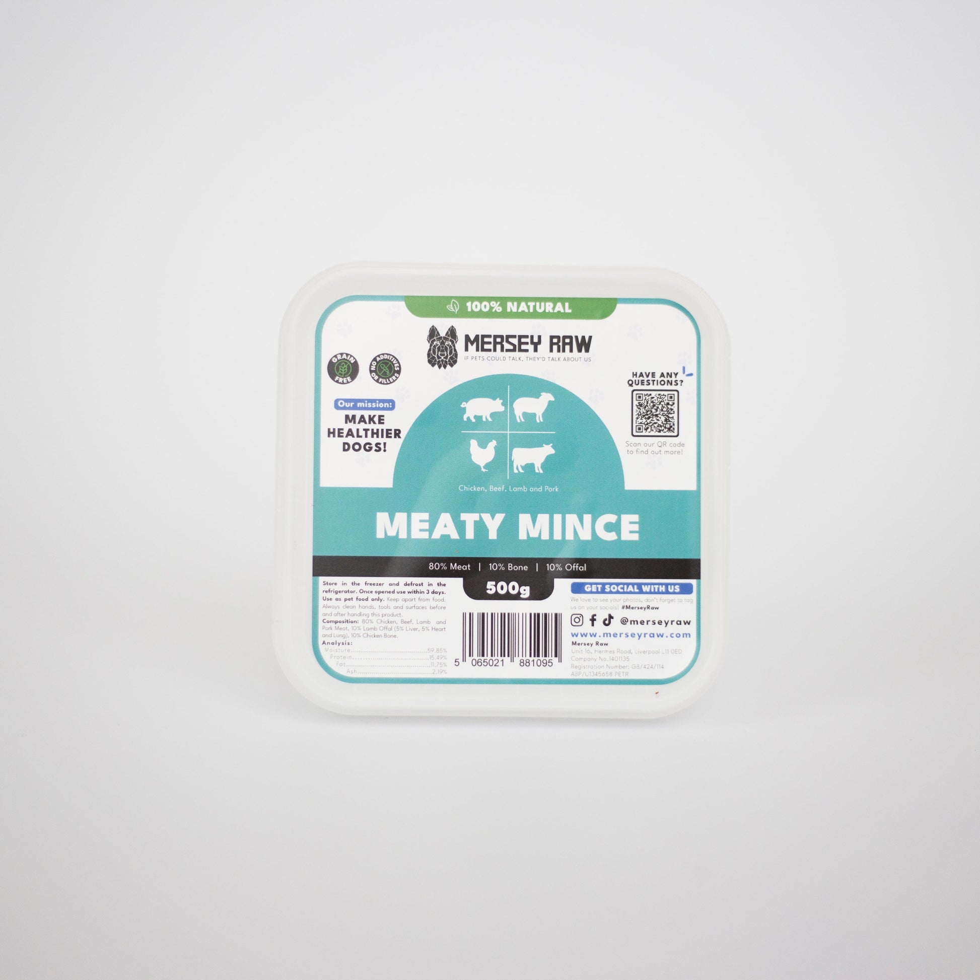 Give your dog the best of all worlds with our meaty mince raw dog food; made with a blend of high-quality meats including chicken, beef, lamb, and pork.